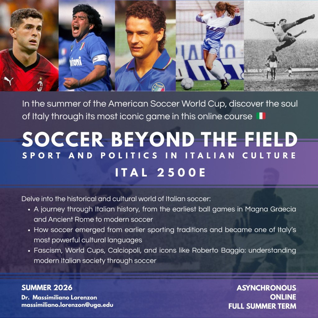 Soccer Beyond the Field: Sport and Politics in Italian Culture, Spring 2025.